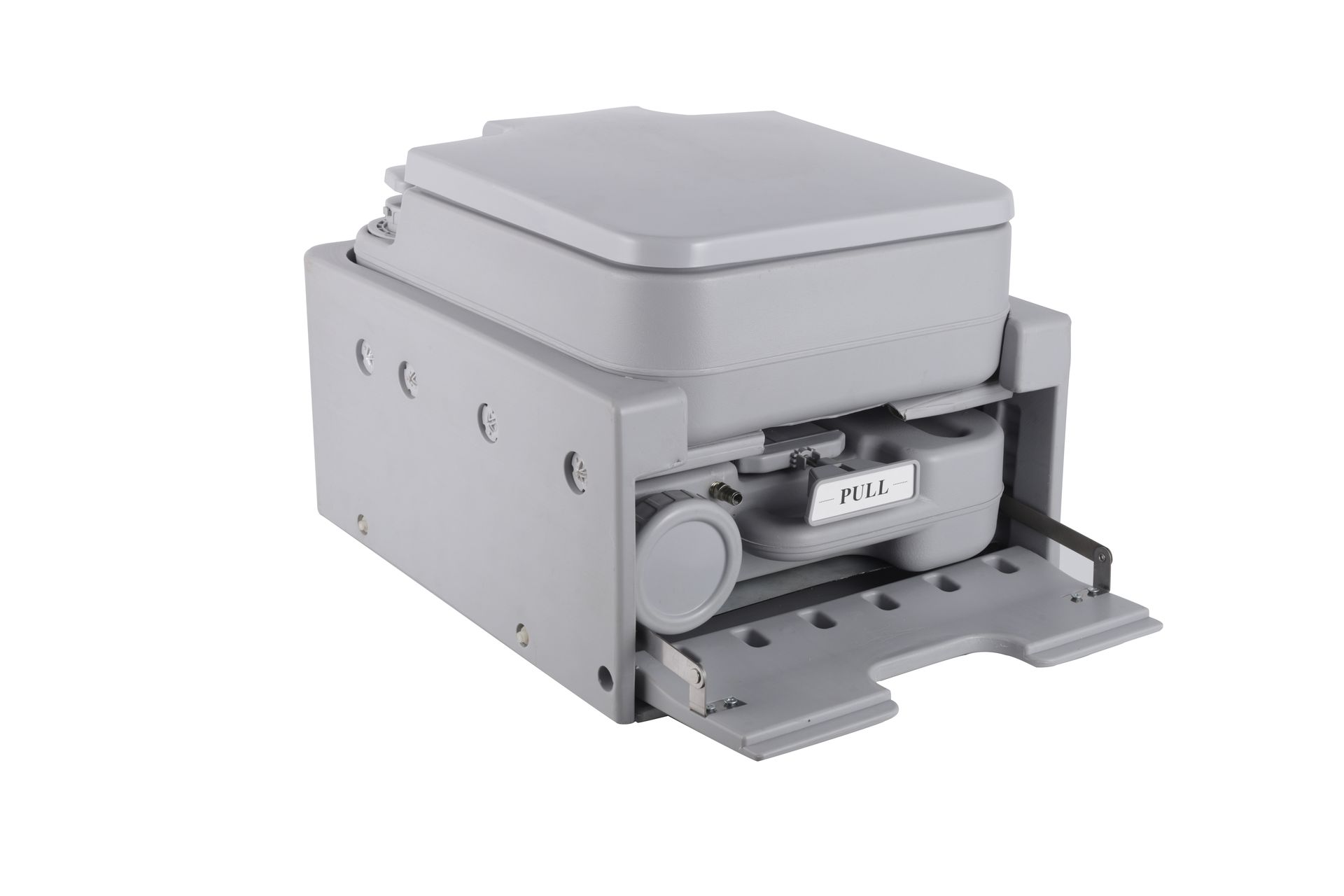To install it, simply drill screws through the bottom casing directly onto the campervan floor or plywood. You can then slide it out from underneath a bed or into an available cavity in a suitable position, ensuring you have enough leg space when the bed is made. This might cost you about $5 for the screws or around $50-$80 for the sliding rail and plywood. Else, you can try our Slider rails specially designed for those who'd wish to slide the toilet into a cabinet.